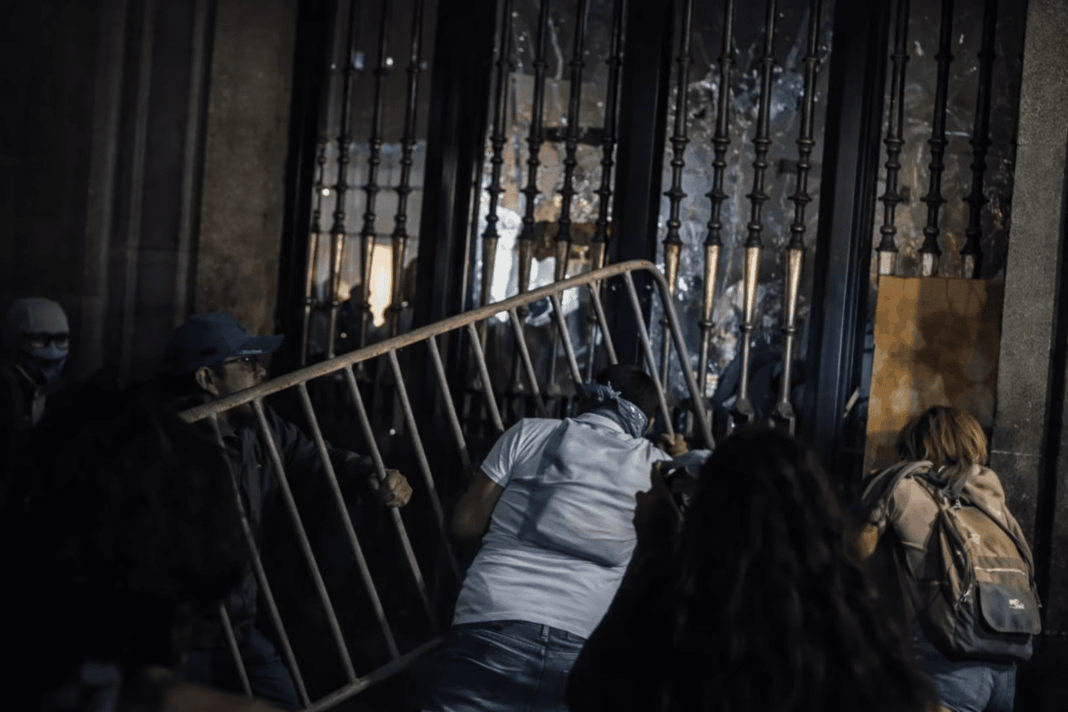 El secretario de Seguridad Ciudadana (SSC), Pablo Vázquez Camacho, informó que, una vez concluida la movilización del 8 de marzo, un grupo de personas arribó al edificio Nuevo de Gobierno, donde retiraron las vallas de resguardo y comenzaron a lanzar piedras y fragmentos de loseta contra puertas, ventanales y muros del inmueble, ocasionando diversos daños materiales.